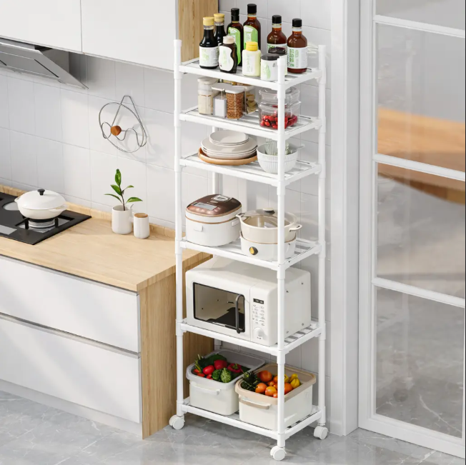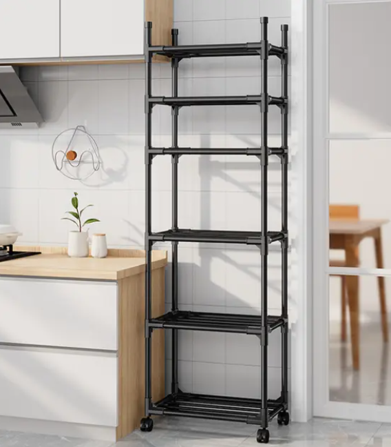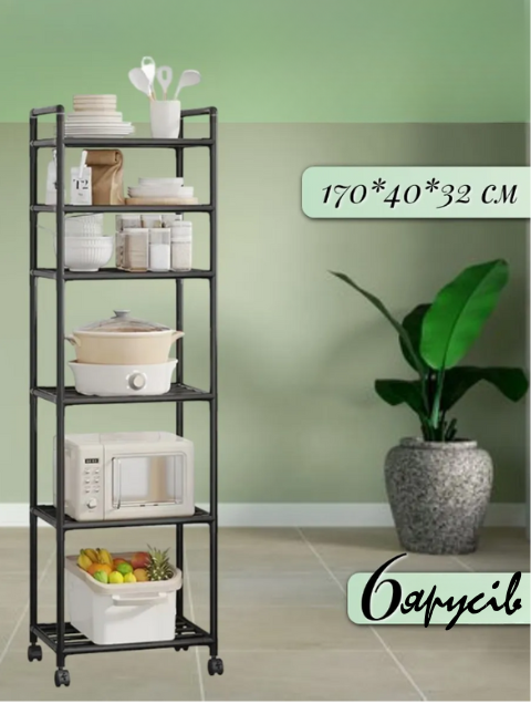 Багатоярусна полиця-етажерка на 6 рівнів — це універсальне рішення для організації простору на кухні, у ванній кімнаті, в спальні, офісі чи коморі. Міцна конструкція витримує побутову техніку, посуд, продукти та дрібні речі, допомагаючи зекономити місце й підтримувати порядок щодня.